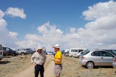 After landing in Denver, Kevin and Scott (yellow shirt in photo) immediately headed for Wyoming for the final 2 days of the Rocky Mountain orienteering meet. Here Scott chats with a teammate from Saturday's relay race.