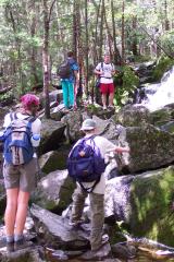 This photo is for Uncle Rick, who was curious about how New England trails compare with his familiar Colorado. Here we ascend the Appalachian Trail from Lonesome Lake toward Mt. Kinsman. The white blaze on the tree indicates that we are on the trail as we directly ascend the course of a rocky stream.