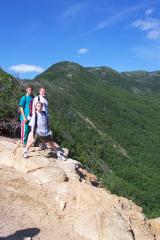At Kinsman North, Phil, Jocelyn and Steve perch above a ledge.