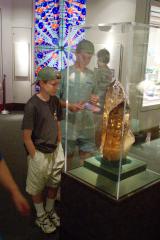 Phil and Kevin appreciate a crystal of smoky quartz at the Smithsonian's Natural History Museum.