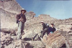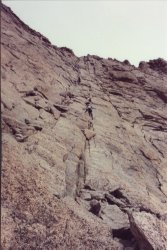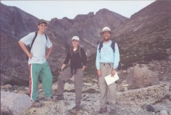 Kevin, Rick, and Jocelyn climb "the trough". In the thin air above 13,000 feet, the steep slope takes your breath away in more ways than one.