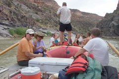 river raft trip on Colorado River, relaxation after shooting the rapids, Utah