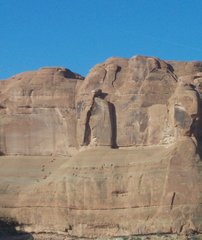 Arriving in Moab, Utah, we arranged to ride down the Colorado River in a raft. The river guide pointed out where a bald eagle hangs out on a cliff above the river.