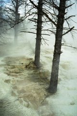 hail storm creates icy beauty on the trees at Fountain Pots Geyser Basin
