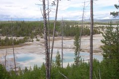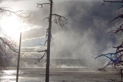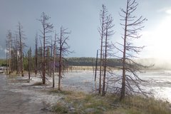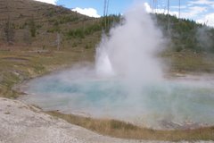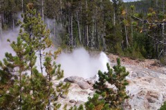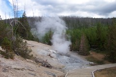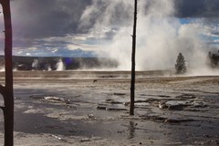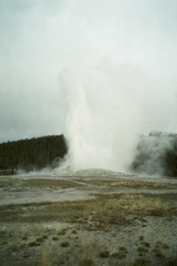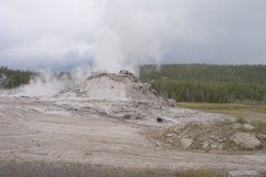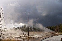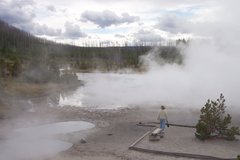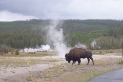 Because Old Faithful was not expected to erupt for 40 minutes, Scott walked a mile to Daisy Geyser, which was projected to erupt sooner. While he waited, a bison casually strolled by. Daisy didn't do more than sputter for 3/4 of an hour, and a storm was threatening, so Scott discontinued his vigil.