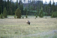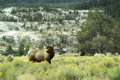 While Scott saw no large mammals in the wilderness of Sepulcher Mountain, Kathy stayed behind in the village of Mammoth Hot Springs, where the elk herd could be observed easily.