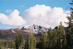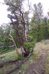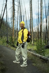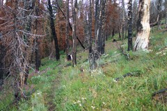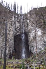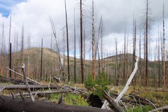The trail to Fairy Falls led past stands of Lodgepole Pine, burned in 1988.