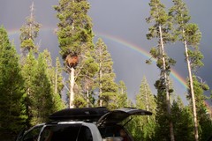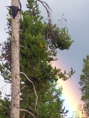 Meanwhile back at Old Faithful, Kathy had viewed the eruption and was waiting for Scott as the storm gathered and began to produce hail. Scott arrived jogging, and the damp couple retreated to the lodge.