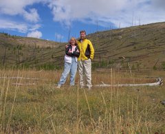 Kathy & Scott with Twin Buttes in the background, Yellowstone